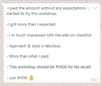 If you Missed joining the WhatsApp Group, link to join is available in the Payment Email Receipt sent by Instamojo. Alternatively, we get in touch with those who made payment but haven't yet joined & add them in Manually. Don't worry. You are in safe hands 😇