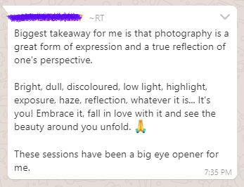 YOU NEED WHATSAPP. That's where all Updates & Interactions happen. You are missing Everything without WhatsApp. Especially, How Others Photographed based on the Daily Assignment Topic